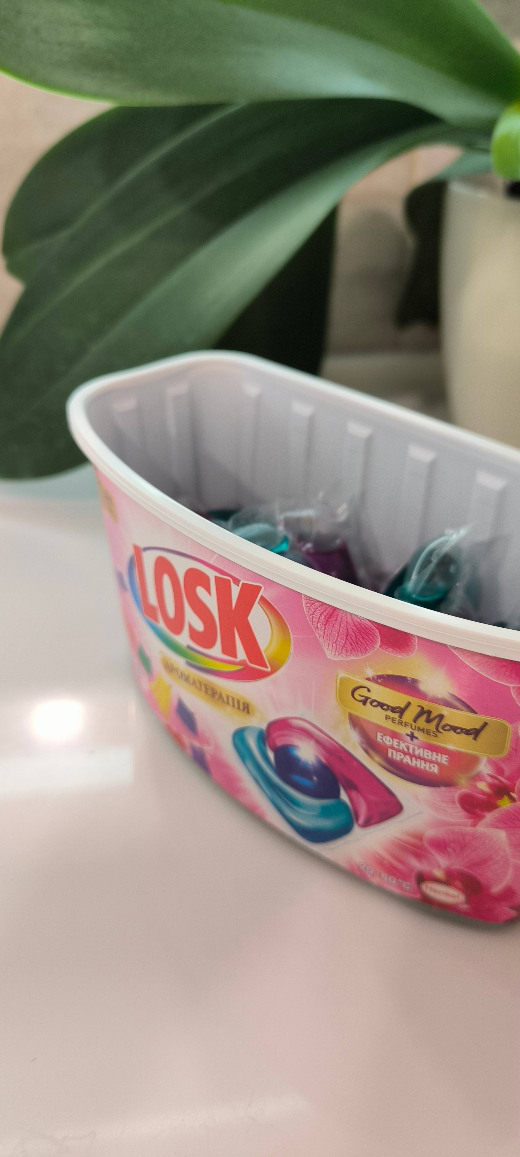 Капсулы Losk Power-Caps имеют многокамерную конструкцию, содержащую различные активные компоненты, которые остаются разделенными до момента стирки. Водорастворимая пленка быстро растворяется в воде, высвобождая мощную смесь ПАВ и энзимов для глубокой очистки. Специальные компоненты защищают цвет, а парфюмированное масло «Малазийский цветок» интегрируется в волокна, обеспечивая длительный, расслабляющий аромат, превращающий стирку в ритуал.