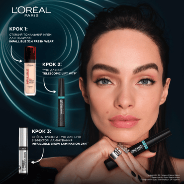 Подарите своим ресницам эффектный объем и потрясающее подкручивание с новой тушью L’Oréal Paris Telescopic Lift Waterproof. Благодаря уникальной щеточке с двойными рядами щетинок и водостойкой формуле, эта тушь обеспечивает безупречный макияж глаз в любых условиях – даже под дождём, в жару или во время активного дня.