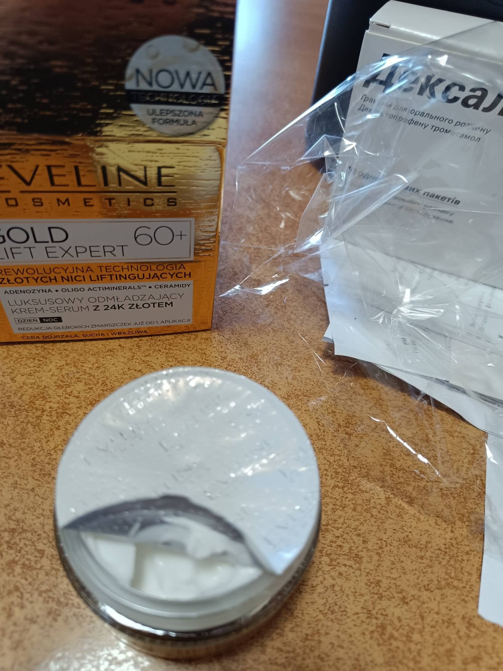 Крем-сироватка Eveline Gold Lift Expert 60+ 50 мл — це розкішна антивікова терапія з 24-каратним золотом та керамідами. Засіб інтенсивно підтягує овал обличчя, заповнює глибокі зморшки та глибоко живить шкіру, повертаючи їй щільність, пружність та молоде сяйво.