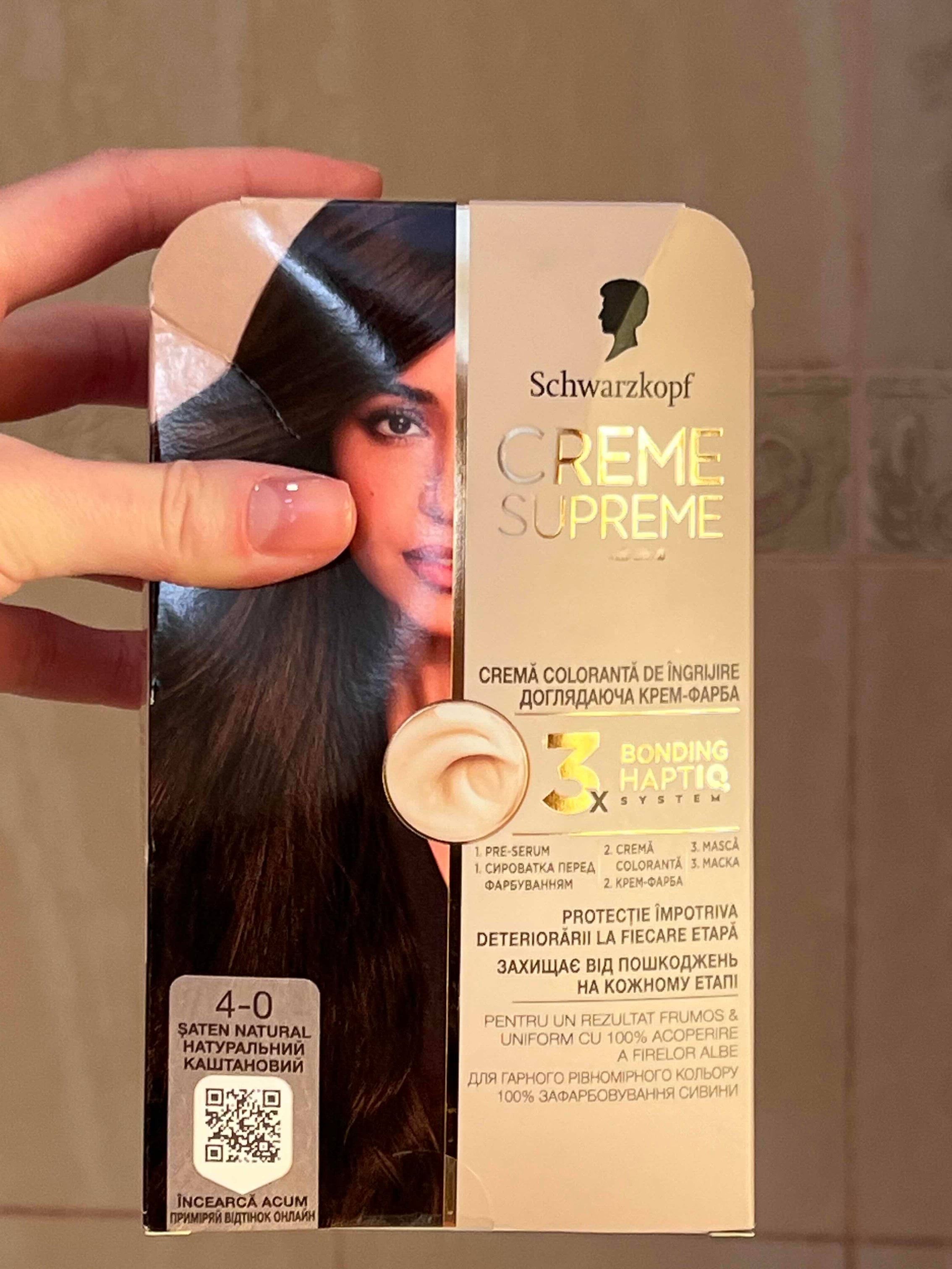 Стійка крем-фарба Creme Supreme призначена для споживачів, які шукають професійну якість фарбування з інтенсивним та глибоким кольором у домашніх умовах. Це ідеальний вибір для повного зафарбовування сивини та отримання насиченого відтінку з глянцевим блиском.