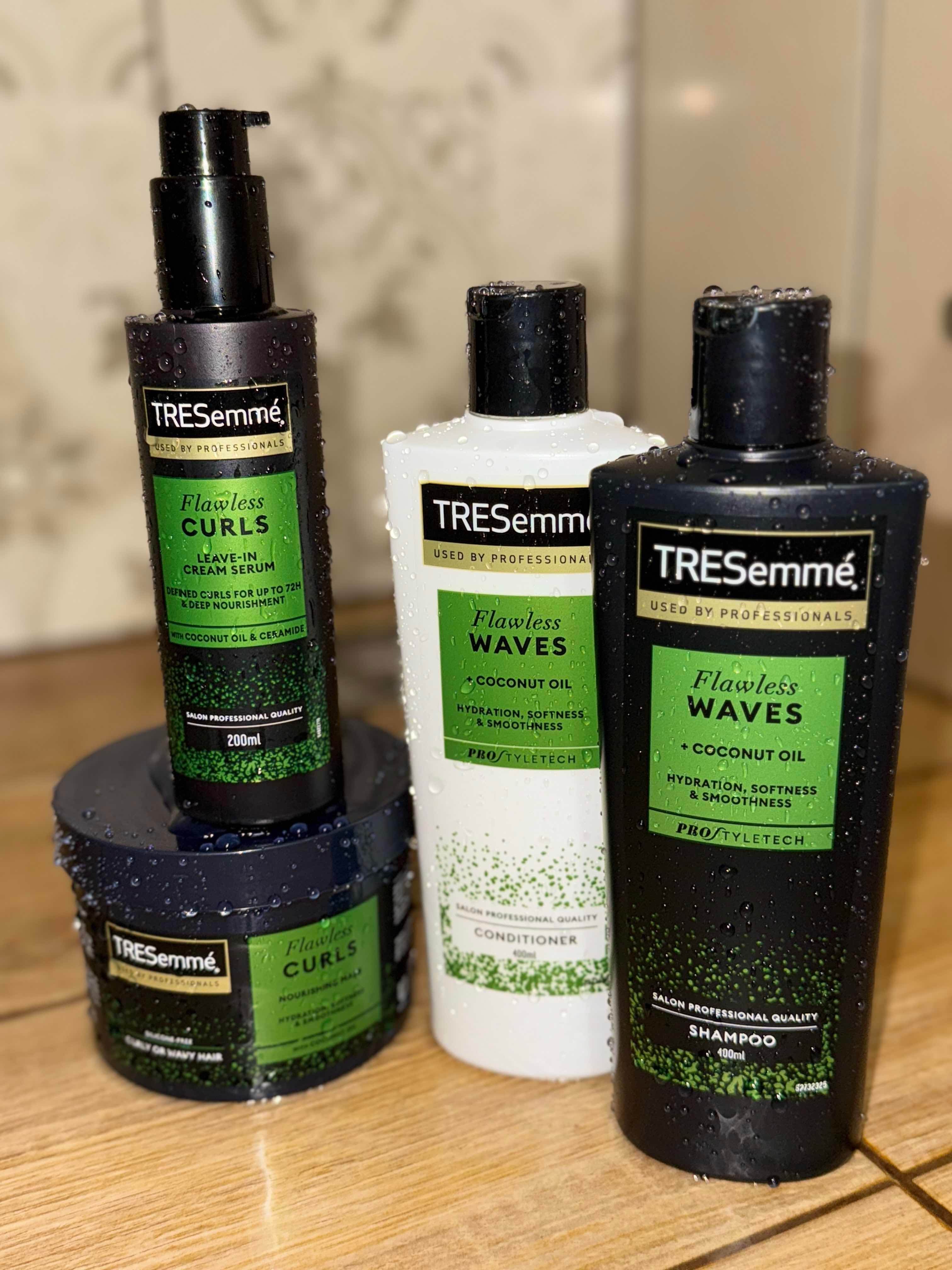 Крем-сироватка Tresemme Flawless Curls поєднує легкість сироватки з живильними властивостями крему. Кокосова олія глибоко зволожує та пом'якшує волосся, а цераміди відновлюють ліпідний бар'єр, що є критичним для кучерявого волосся, схильного до сухості. Незмивна формула контролює пухнастість, фіксуючи завиток без склеювання, та забезпечує м'яке укладання та захист протягом дня.