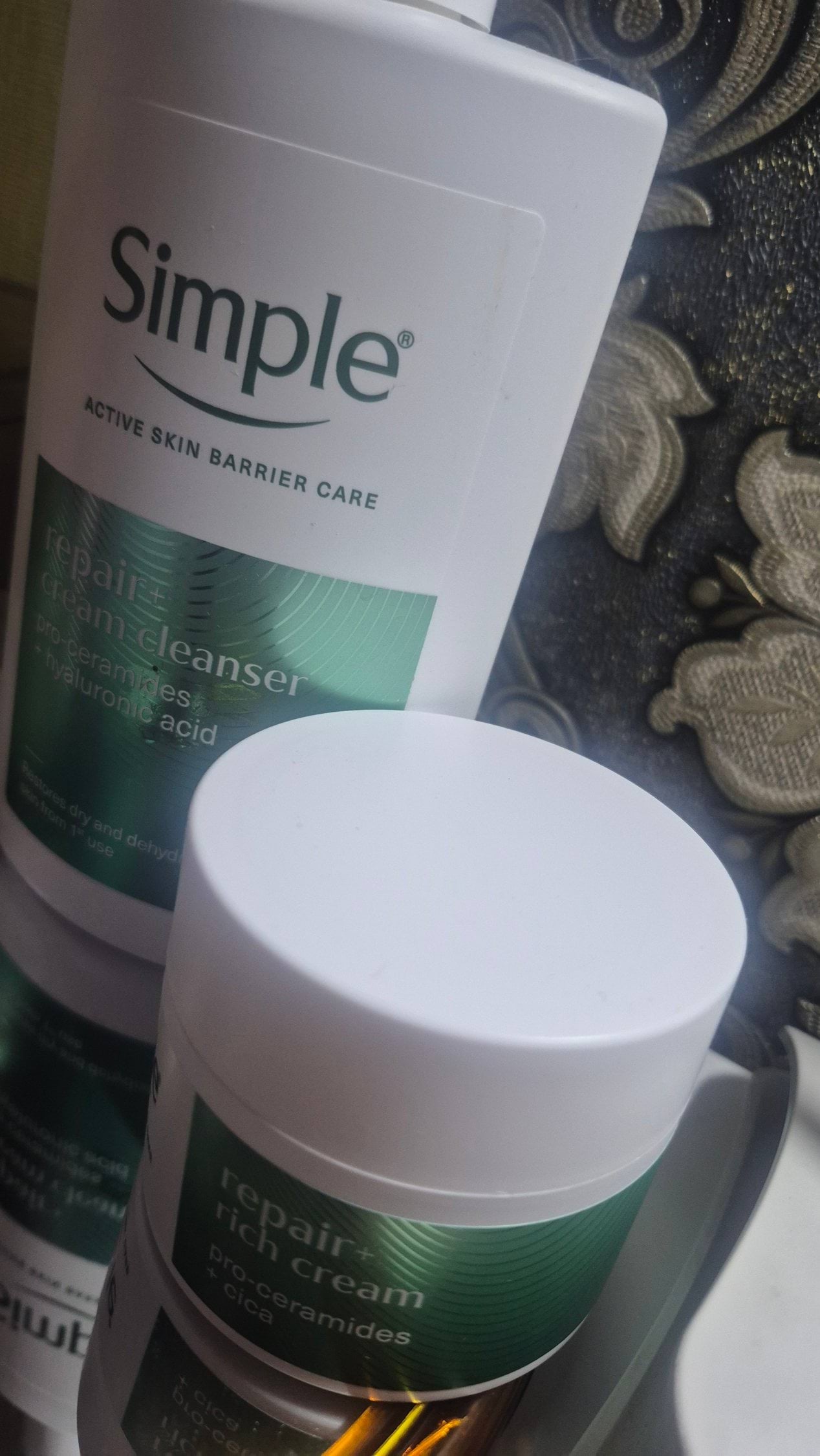 Засіб для вмивання Simple поєднує м'які очищувальні компоненти з активними доглядовими інгредієнтами. При контакті з водою він утворює ніжну піну, яка делікатно захоплює бруд і надлишки себуму. Про-кераміди допомагають відновити пошкоджені ділянки захисного бар'єру, а гіалуронова кислота запобігає трансепідермальній втраті вологи, що зазвичай відбувається під час вмивання. Таким чином, шкіра залишається чистою, м'якою та захищеною.
